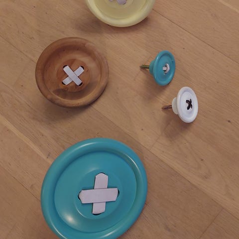 Knagge-«stativ» med farger på. Morsom å ha på for eks barnerom eller lignende. Kan utvides til ønsket størrelse