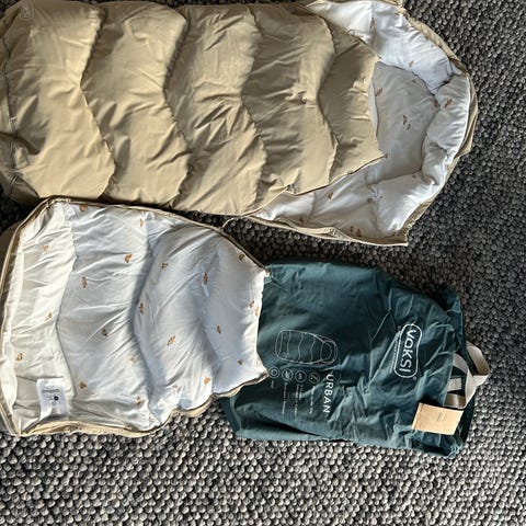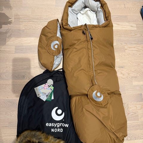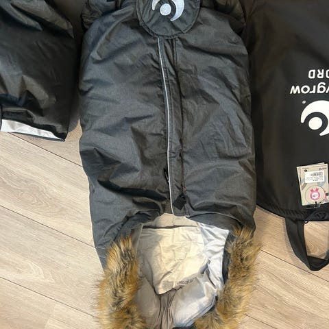 Pent brukt og kjøpt ny av meg. Selger sommerdynen med som er kjøpt separat. Det er litt misfarging fra sol på fremre del, denne er svart som utgangspunkt. Ingenting å si for bruken og det er meget god kvalitet på denne posen.