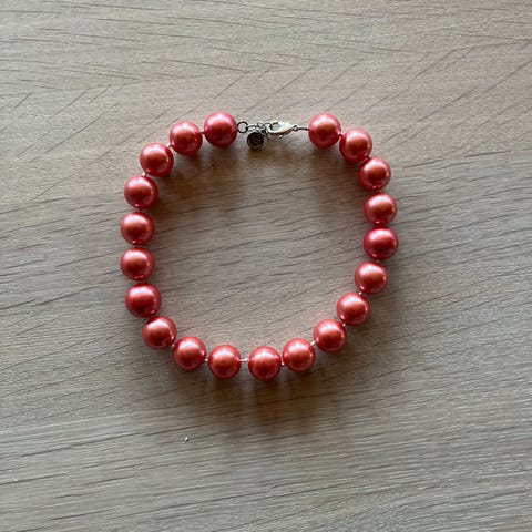 Håndlaget armbånd med rød glass"perler". Enkel og pent armbånd til mange annledninger.