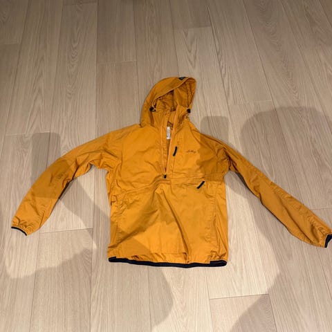 Svært pent og lite brukt. Ser ny ut. Praktisk og pen anorakk til dame. To lommer. Sennepsgul farge.
