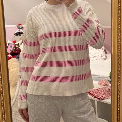 Vila Genser i hvit farge, størrelse S. Genseren har en strukturert strikk og puffermer. Kun brukt et par ganger pga feil størrelse.
