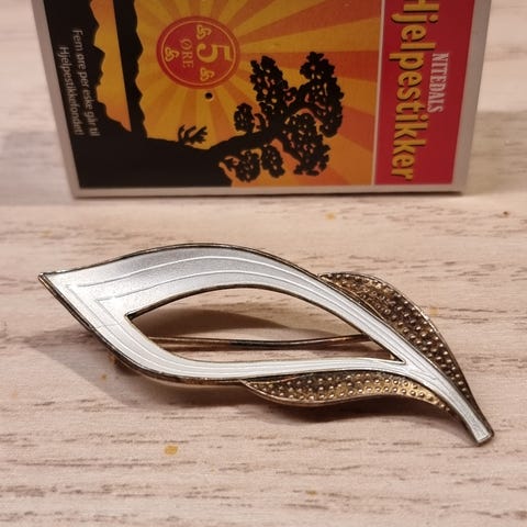 Brosje, sølv, emaljebrosje, nål, emaljenål, gul emalje, vintage, Aksel Holmsen, norsk design,