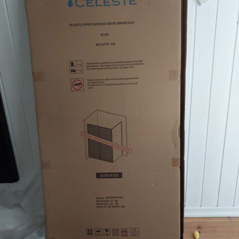 En ny dusjvegg i eske selges, dreibar med veggfeste mål 70 x150 cm
