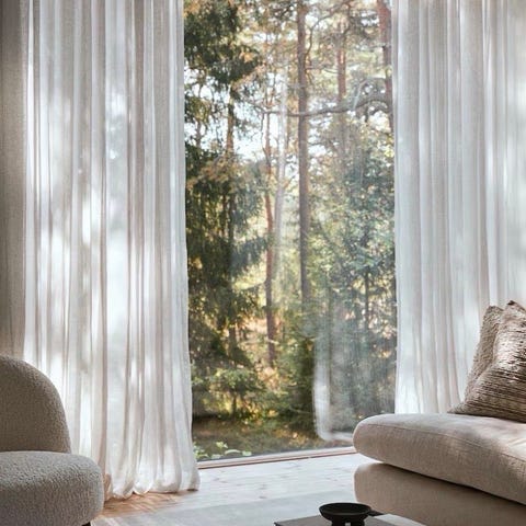 Selger 6 lengder gardin I Lin-blanding (55% Lin 45% Polyester)