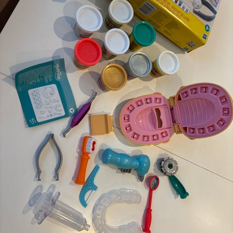 Play-Doh lekesett med ulike former og verktøy for modellering. Inneholder flere fargerike plastdeler som kan brukes sammen med modellkitt for å lage forskjellige figurer og mønstre. Passer for barn og fremmer kreativ lek.