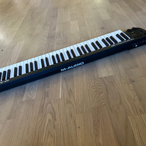 M-Audio Keystation Mini 32 MIDI Keyboard Controller med 32 taster i svart farge. Kompakt og bærbar design for musikkproduksjon og kontroll. Inkluderer Avid Ignite musikkprogramvare.