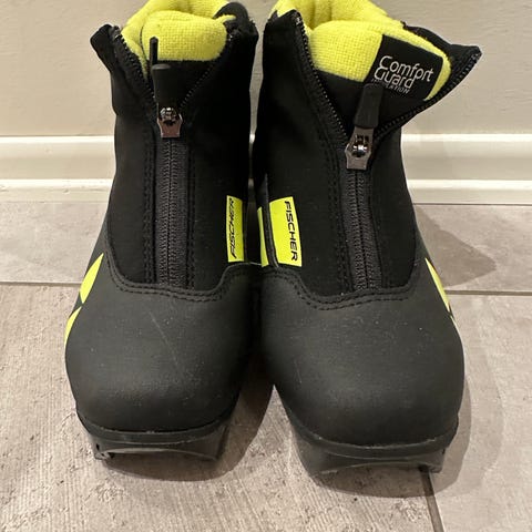 Fischer XJ Sprint langrennssko i størrelse 32. Skoene er svarte med gule detaljer og har snøring med glidelås. I god stand.