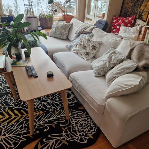 Vakker rustfarget sofa i stilig design. Meget pen.