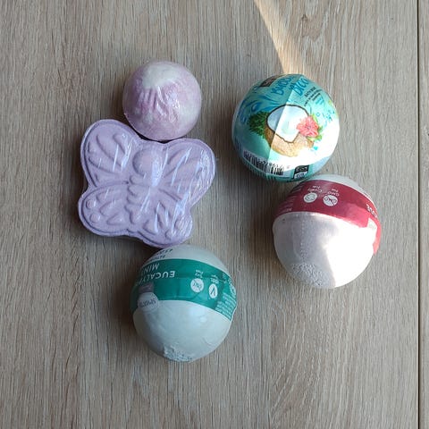 I det første rommet er det fire store badeperler (10 g).