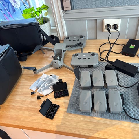DJI Mavic 2 Zoom drone. Kommer med smart fjernkontroll, 1x batteri, 4x propellere (2 ny, 2 brukte) og bæreveske. Egnet for luftfotografering og videoopptak. Leveres kofferten.