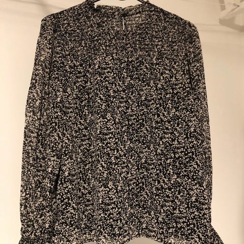 Fant ikke noe str. på blusen, men den passer til en str. S/M. Nesten som ny, brukt en sjelden gang.