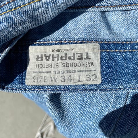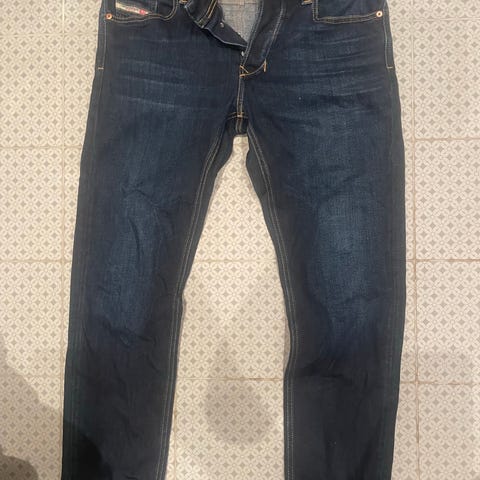 Diesel jeans i blå farge, herrestørrelse L med midjemål W32. Laget av denimmateriale, designet for hverdagsbruk.