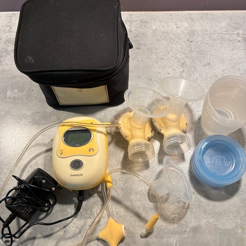 Selger en medela freestyle pumpe. Følger med flere størrelser av "trakter". Fungerer som den skal.