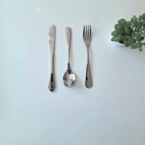 Skje og gaffel er i svært pen stand. Kniven har ikke vært brukt.
