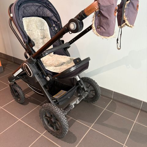 Emmaljunga barnevogn/sportsvogn i grått stoff. Vognen har justerbart sete med sele, stor og god kalesje/solskjerm med mulighet for lufting i topp/bakkant. Praktisk lomme bak ryggen til oppbevaring av små nødvendigheter. Godt håndtak for barnet å holde i; kan legges helt flatt eller klipses av for bruk av vognpose. Veldig lett og god å trille! Kjøpt bruk av oss, men lite brukt av første eier. Hos oss er den brukt som sovevogn i barnehage et drøyt halvår, før soving på dagen plutselig var historie. Her er det derfor igjen mye vogn!