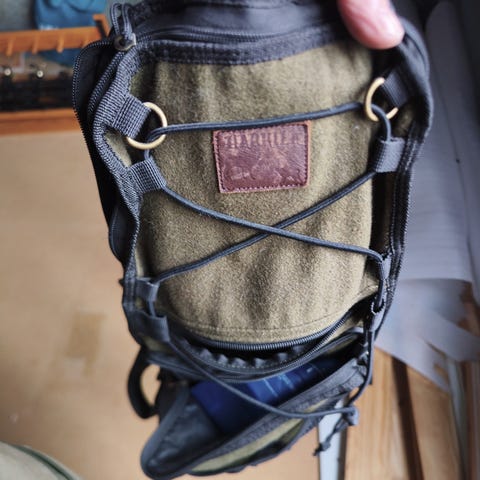 Den er samme modell som Norøna Hjerkin. 40 liter. Står Stetind på den. Veldig pent brukt. Spesielt egnet for å være «stille» under jakt og derfor laget av 100% bomull. Laminert vannavstøtende inni. 800,-+ sending. vil helst ikke bruke PostNord.