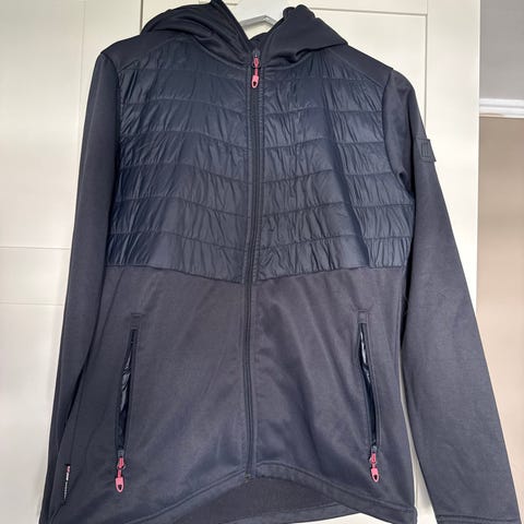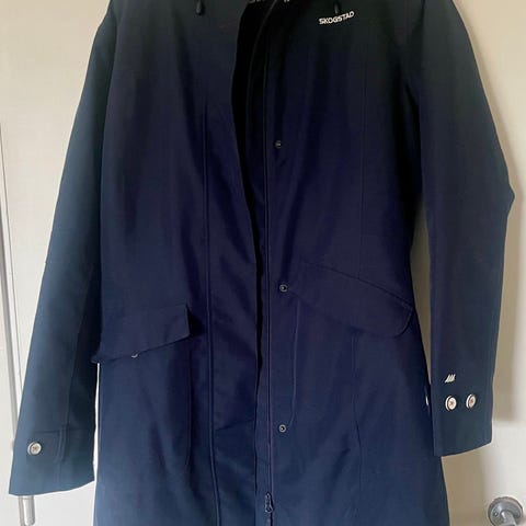 Skogstad størrelse 42 for kvinner, «matt sort». Tåler mye vær:-) tynt for, pen fasong. Jakken har glidelås og knappelukking, samt lommer med glidelås. Pent brukt. Halvlang.