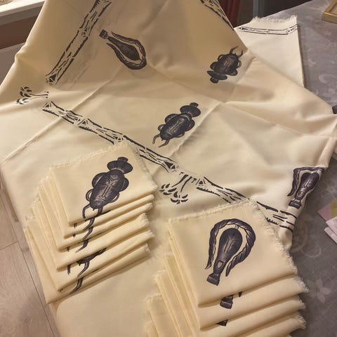 Kjøpt på Lanzarote for over 30 år siden. Ikke brukt, kun ligget bortgjemt i skuffen. Nydelig blå. Klare gulfarger. Maskinsøm.