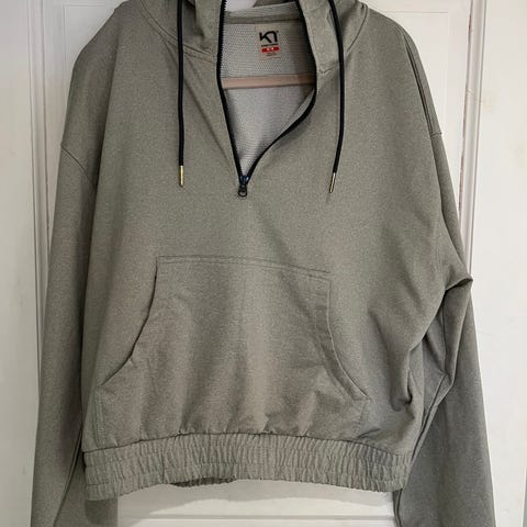 Lysegrå/lyserosa. Str M.Lite brukt dame hettegenser/genser fra We are fit selges 90kr.