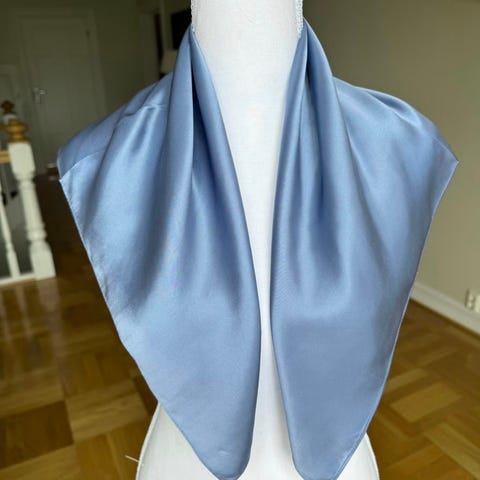 Flott lys brun farge. Mykt og behagelig. Passer veldig fint til bunad også. Dette er er riktig størrelse om man ønsker å putte endene inn under fronten på bunaden. Skjerfet er i Mulberry silke som er den beste silke kvaliteten. 100% silke. Helt som nytt. Størrelse 65x65cm. Kan gjerne sende med posten til 46.- så sparer man litt på frakten.