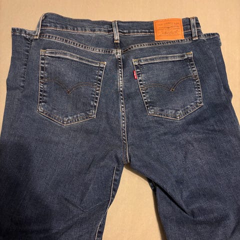 Levi's 724 High Rise Straight jeans i blå farge, størrelse W26, L32. Laget av denimmateriale. Jeansene har høy midje og rett ben.