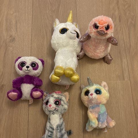 Ty My Little Pony My Little Pony Leker i myk stoff i ulike størrelser og farger, inkludert enhjørninger og andre fantasidyr.