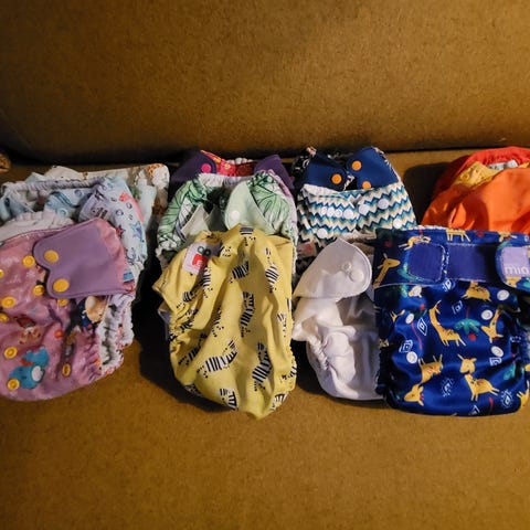 8 stykk pent brukte AIO-bleier frå Lillegull. Passar nok frå 5 kg og eit godt stykke oppover. Har framleis ei rad nedkneppa for gut på 10 kg. Desse er lure fordi dei tørkar like raskt som lommebleier. Nokre raude merkar frå førre brukar på innsida av nokre knappar. Innlegga er i bambus og mikrofiber. Større barn kan nok trenge ein booster for å vare i fleire timar.