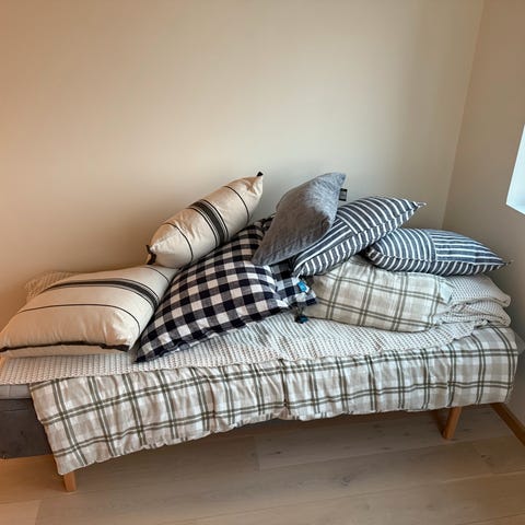 Sovesofa fra Møbelringen . Farge sennepsgul, som ny selges. Mål utslått er 2x1.40 cm.