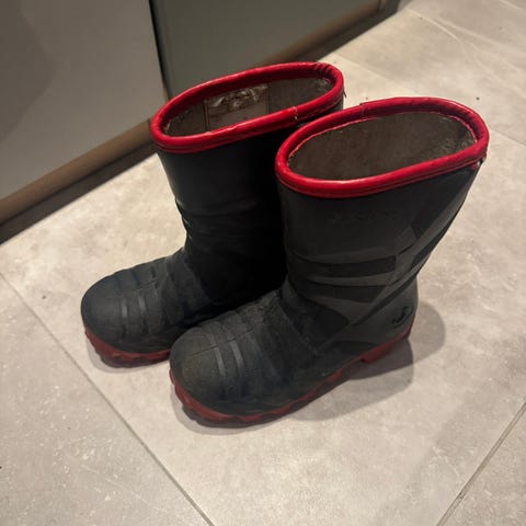 Tretorn barn gummistøvler i størrelse 33. Støvlene er svarte og egnet for både gutter og jenter. Materialet er vanntett gummi, noe som gjør dem passende for vått vær og utendørs bruk.