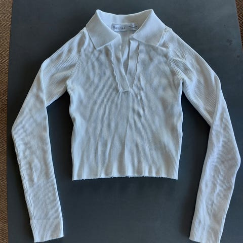 Bershka Andre topper i størrelse S for kvinner, farge hvit. Laget av ribbestrikket materiale med kortermet design og knappelukking foran.