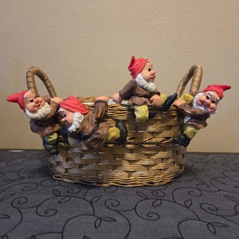 De syv små nisse dverger som kan pynte opp julebordet. Festes på glass/ kopper/ boller.