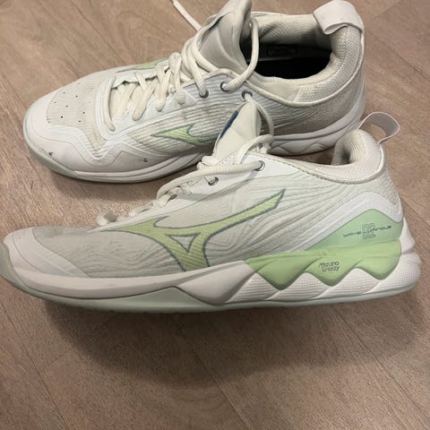 ✨Superfine Mizuno Wave selges da dattera mi har vokst ut av dem. Skoene er brukt til håndball i en sesong Sålen gir godt grep på underlag i hallen! Godt egnet som gymsko.