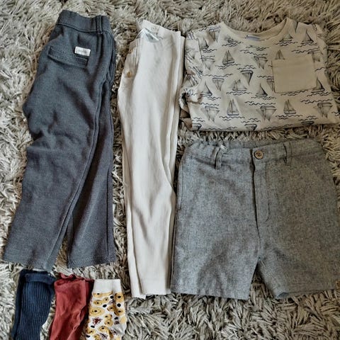 Pent brukte klær uten hull og flekker. Vanlige bruksmerker her og der, men masse bruk igjen på alle plaggene. Noen i størrelse 98, de fleste 104 og høstjakka ee i 110 men virker mer som 104 for meg. Jeg kan sette sammen en del av klærne i en mindre pakke ved interesse. 350 kroner for alle sammen:)