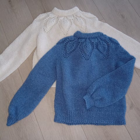 Nydelig hjemmestrikket rød genser samt god og varm hjemmestrikket jakke. Aldri brukt. Kan selges hver for seg, kr 500 pr del. Kan sendes.