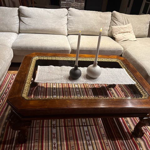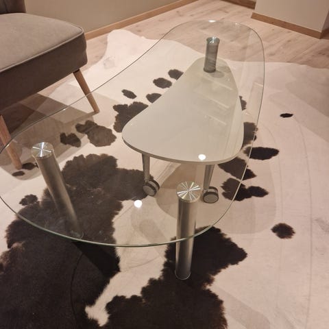 Meget pent sofabord med solid glassplate fra Bord Birger. Ny pris kr.5800,- KUN kr.2500,-