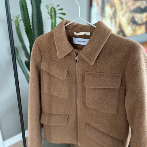 kort høst/vinterjakke fra Nör Denmark. Strl 4, men passer alt fra 34-40 spørs, hvordan du vil den skal sitte. Er selv en strl 38, for referanse på bilde.