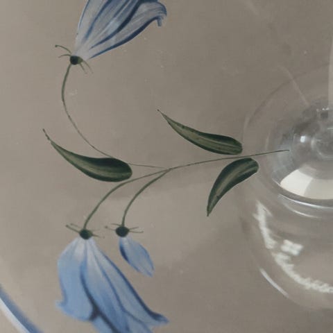 Dessert/ Champagneglass. 12 glass i serien Blåklokke fra Firkløveren.Selges 50 kr pr stykk eller samlet til 500kr. Ubrukt. Sendes ikke. Hentes i Elverum