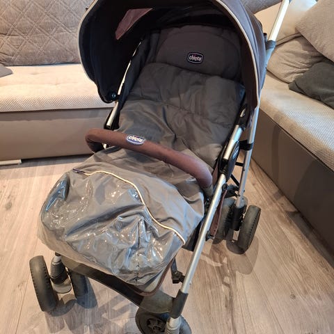 Vognen er i god stand, setet kan legges helt flatt og vendes begge veier (forover/bakover).