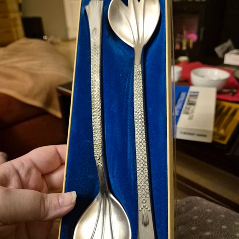 Tinnsmyrwa Tinn Sukker- og Melkeskåler laget av sølvfarget metall. Settet består av to skåler med dekorative håndtak og mønster langs kanten. Skålene har en firkantet form med avrundede hjørner. Egnet for servering av sukker og melk eller lignende tilbehør.Ett stykke 150 kr, begge sammen 250 kr