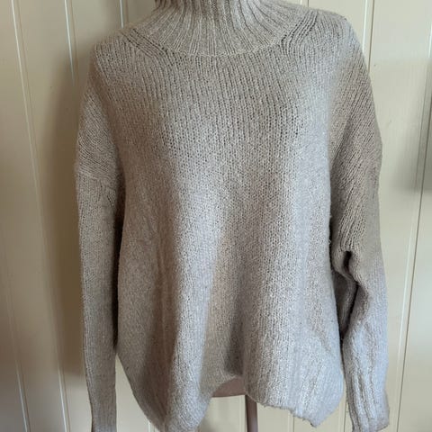 Lys gråmelert strikkegenser med 25% ull og 25% alpaca i stor str M - masse vidde, passer str 38-44.