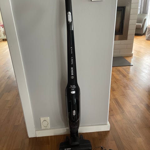 Bosch Readyy 16.8V trådløs støvsuger i rød farge. Batteridrevet håndstøvsuger med 16.8 volt kraft, egnet for enkel rengjøring og oppsamling av støv og smuler.