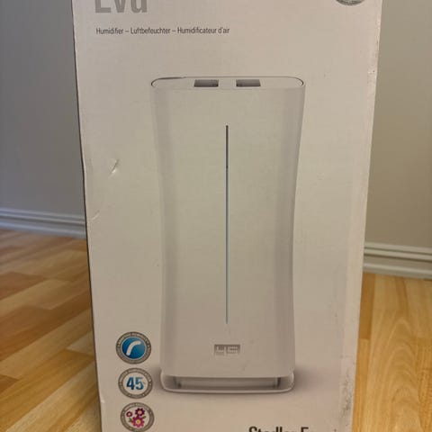 Stadler Form Oskar Luftfukter/luftrenser i hvit farge. En kompakt og stilren enhet designet for å forbedre innendørs luftkvalitet. Passer for bruk i hjem eller kontor for å redusere partikler og forurensninger i luften.
