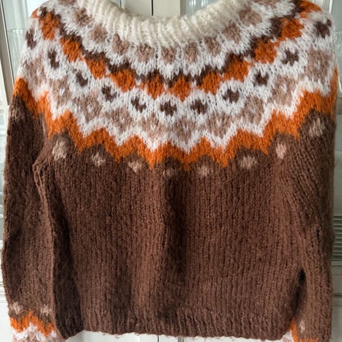 Selger en fint brukt strikkagenser da den er for liten for meg, strikket av en bekjent. Passer en XS og nedover.