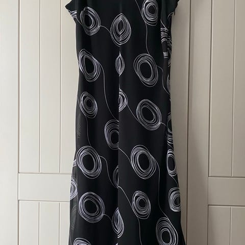 Nydelig lett festkjole i 100% silke helforet med polyester for. Mål på bilde. Glidelås i siden, strikk i ryggen og justerbare skulderstropper.