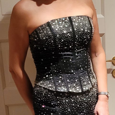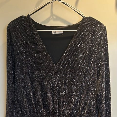Fin svart glitterkjole fra cubus i strl L, passer bra til festsesongen og julebord. Pent brukt bare et par ganger🖤