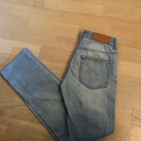 Pent brukte svarte skinny jeans, størrelse W27/L32, selges rimelig. Mud jeans er et bærekraftig merke som produserer bl.a. jeans av god kvalitet. Disse er 98% bomull, 2% elastan så har noe stretch og er behagelige på. Selges da de nå er for små for meg. Nypris lå på rundt 1500 kr da jeg kjøpte de for noen år tilbake.