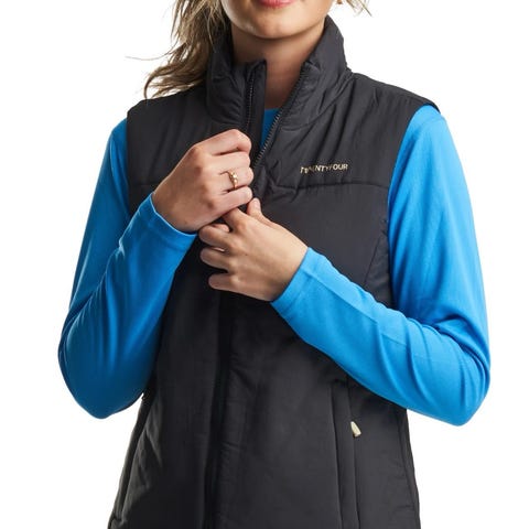 Twentyfour Vattert Vest for dame i brun farge, størrelse 40. Laget med vattert materiale som gir isolasjon og komfort. Utstyrt med glidelås foran og lommer med glidelås. Passer til bruk som ytterplagg i kjøligere værforhold.