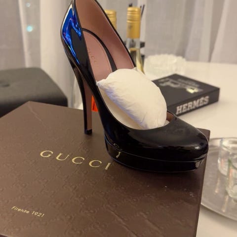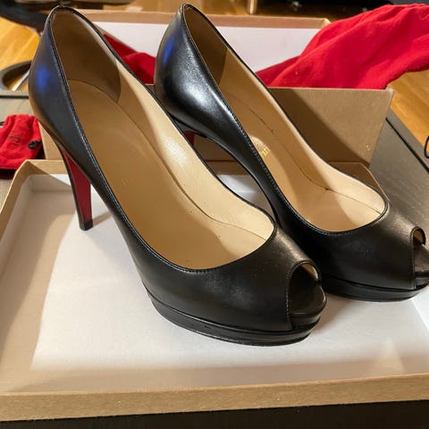 Seen on the likes of Jada Pinkett-Smith, these Christian Louboutin strappy booties will give you the ultimate rocker chic look. Hailing from the Spring 2012 collection, they feature a strappy black leather exterior all the way to the ankles, a toe strap for extra security and a gold-tone platform. They also feature white leather in the back that contrasts beautifully with the black and a 12cm thick wooden heel. Original Retail Price: US $1,295
