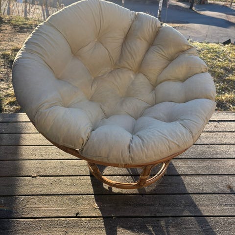 Pent brukt lenestol fra IKEA i hvit. Pyntepute og pledd følger ikke med.