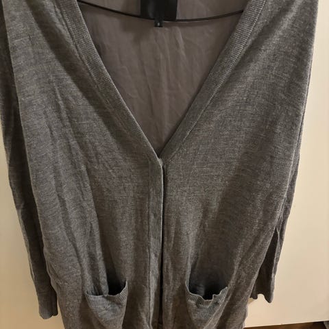 Fin basic cardigan med sorte knapper. Str m fra conwell. Jakken består av 70% myk kløfri merinoull 🖤 Sort og lite brukt, ingen bruksmerker. Kan forekomme en nupp her og der, men svært lite, det kan enkelt fjernes med nuppefjerner.